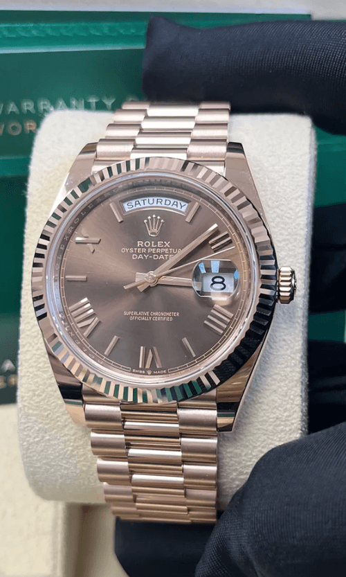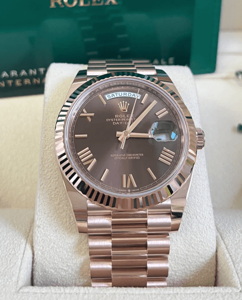 Rolex Day-Date 40 228235 Rose Gold Chocolate Roman Numerals Dial